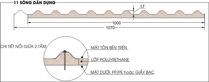 2 | Độ dày lớp tôn thông dụng | mm | 0.27, 0.32, 0.37, 0.42 | 0.27, 0.32, 0.37, 0.42 | 0.26, 0.31, 0.36, 0.41 |