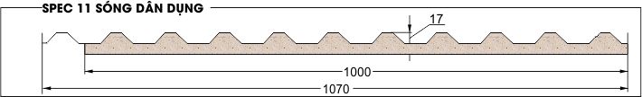 THÔNG SỐ KỸ THUẬT CỦA TẤM LỢP TONMAT– SPEC 11 SÓNG DÂN DỤNG